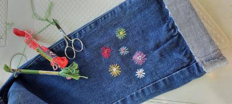 Corso di ricamo su jeans nell'ambito dei laboratori "EN PLEIN AIR" organizzati dal Comune e dalla Biblioteca.