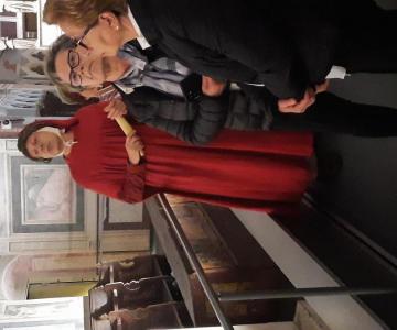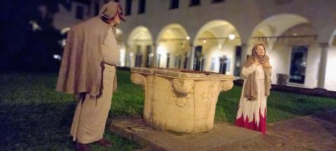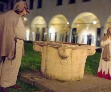 Infine nel chiostro della chiesa degli Eremitani il giullare-diavolo e la popolana-invidia si sono simpaticamente confrontati sul contrasto tra povertà evangelica e il danaro conseguito con l'usura.